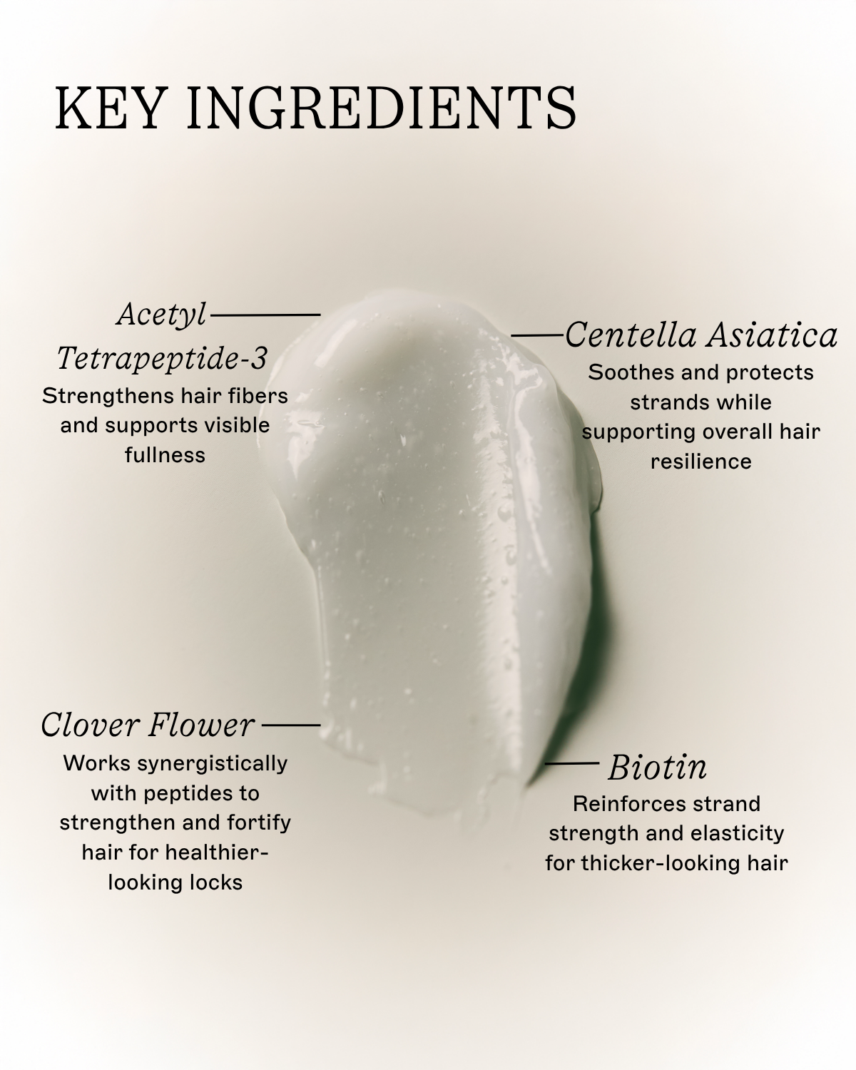 - Acetyl Tetrapeptide-3 – Strengthens hair fibers and supports visible fullness