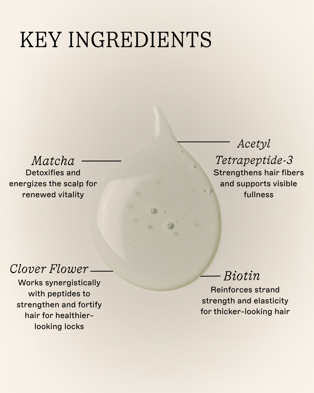 Strengthens follicles and enhances scalp circulation to promote healthier, fuller-looking hair.